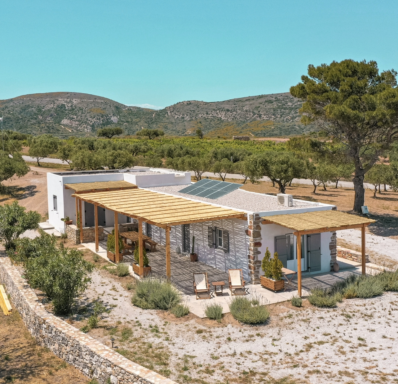 The house consists of 1 room. An open plan kitchen and bedroom and a bathroom. There is a terrace with a unique view and a garden around. Fully equipped kitchen, solar water heater, photovoltaics and electrical equipment. Unique and peaceful place, idyllic landscape, relaxed and quiet atmosphere!